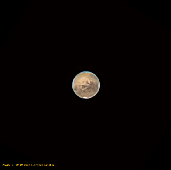 Marte en LRGB Telescopio: Celestron C 11 EDGE HDMontura: CGEM DXProgramas: Firecapture, Autostakkert, Registax, PixInsihth, PSCámara: ASI 174 MM; Filtros: LRGB Fecha: 17/10/20; Ubicación: Serra de L’Obac Comparte esto: Compartir en X (Se abre en una ventana nueva) X Compartir en Facebook (Se abre en una ventana nueva) Facebook Compartir en WhatsApp (Se abre en una ventana nueva) WhatsApp Me gusta Cargando... Relacionado