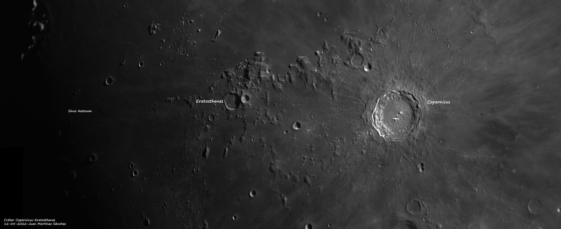 Cráteres Copernicus, Eratosthenes y Sinus Aestruum Comparte esto: Compartir en X (Se abre en una ventana nueva) X Compartir en Facebook (Se abre en una ventana nueva) Facebook Compartir en WhatsApp (Se abre en una ventana nueva) WhatsApp Me gusta Cargando... Relacionado